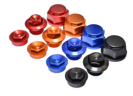 Achsmuttern und Achsschrauben aus eloxiertem Aluminium für die Vorder-/ und Hinterachse.